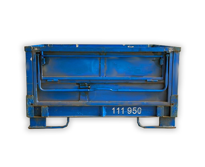 Składany metalowy pojemnik – kontener 111 950 jest idealny do efektywnego transportu i magazynowania towarów w różnych sektorach przemysłowych, gdzie wymagany jest powtarzalny transport ciężkich części.